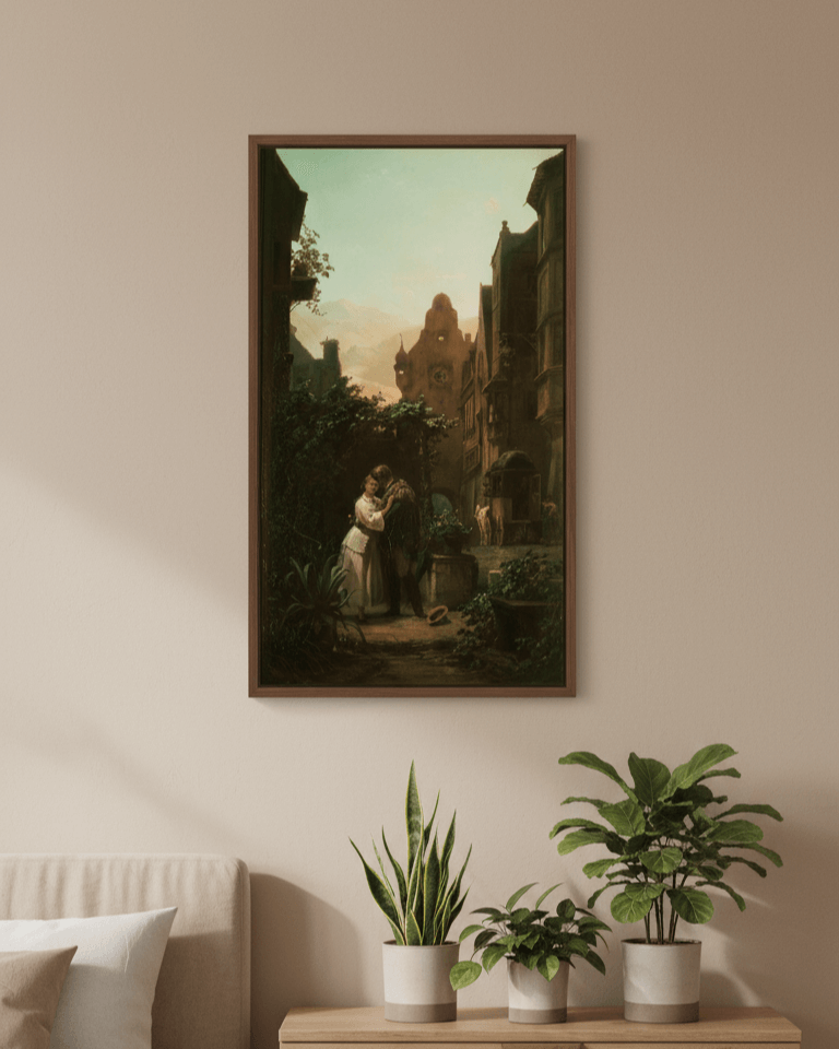 Spitzweg verzichtet auf große Gesten und dramatische Effekte. Stattdessen lebt das Bild von seiner feinen Beobachtung, der warmen Farbigkeit und der leisen Melancholie des Abschieds. Es erzählt von Veränderung, Loslassen und dem Lauf des Lebens – Themen, die zeitlos berühren.
