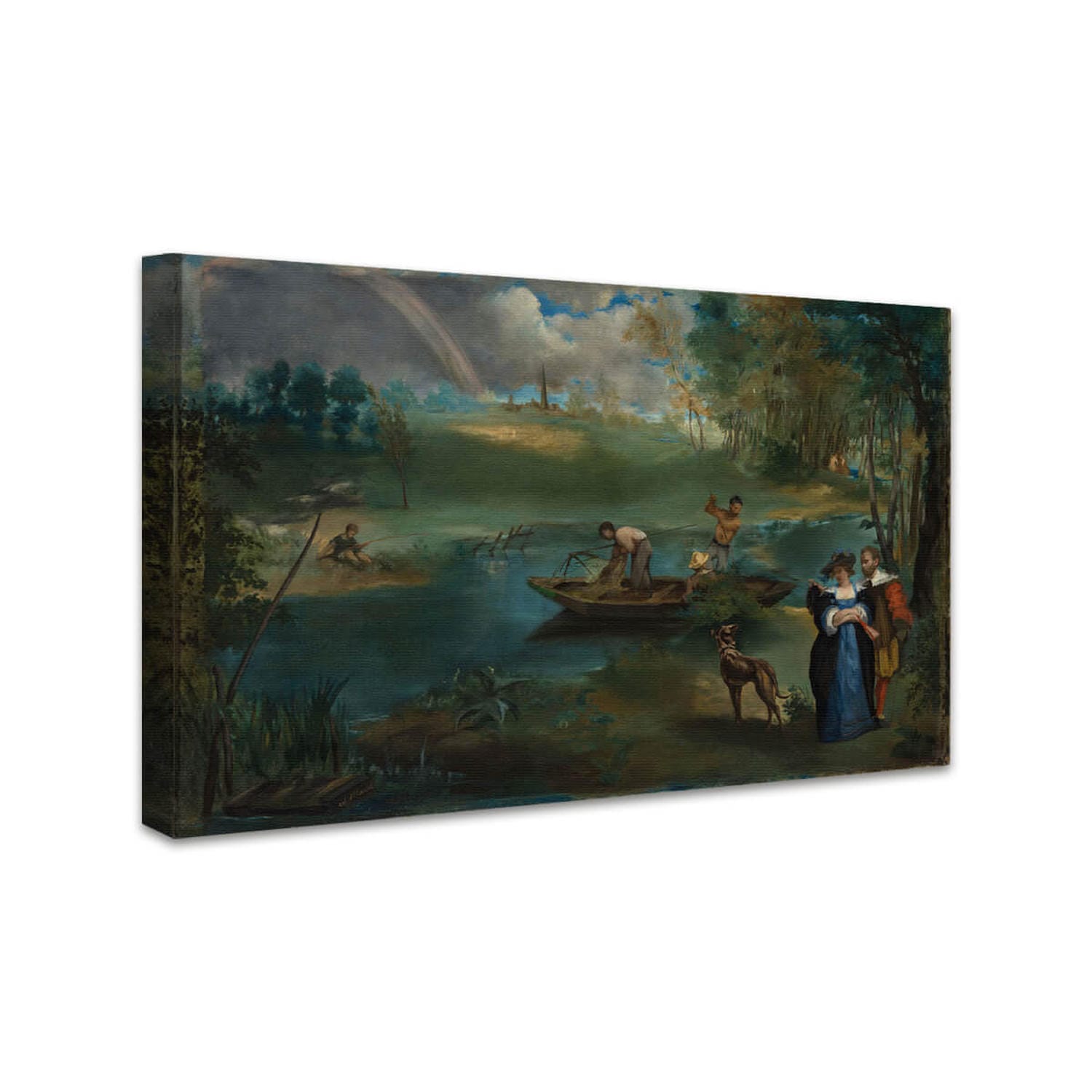 Das Bild zeigt den Angler, in entspanntem, jedoch konzentriertem Zustand, während er seine Angel auswirft. Manet verwendet sanfte Grüntöne und ruhige Blautöne, um das friedliche Ambiente der Szene zu verstärken. Die malerische Darstellung des Wassers und des Himmels vermittelt eine fast meditative Ruhe, die den Betrachter in den Moment hineinzieht.