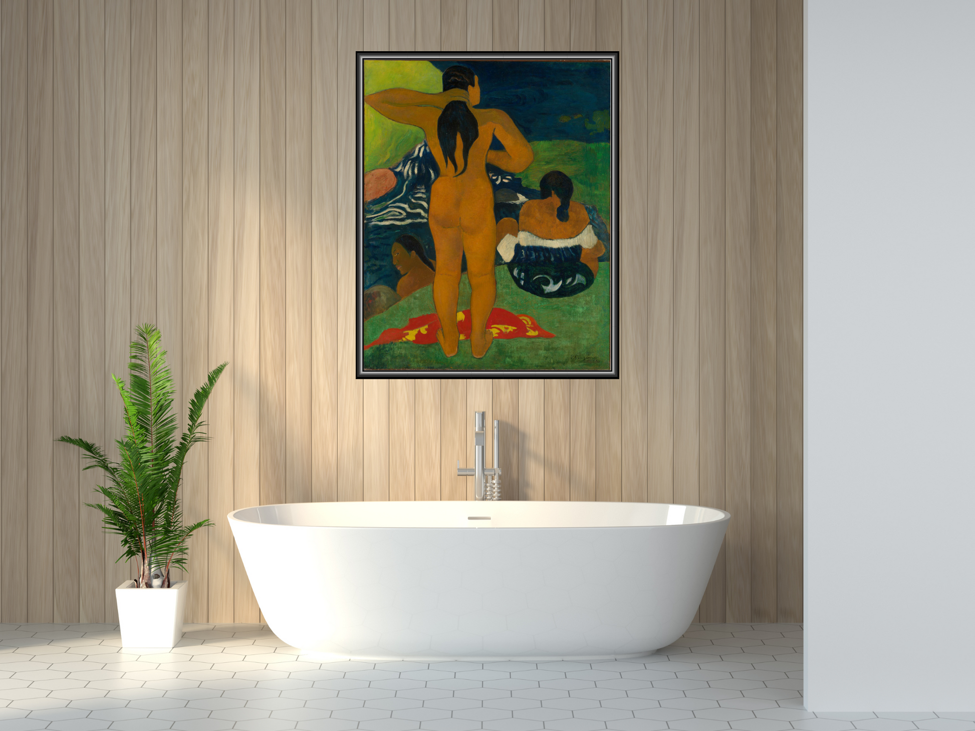 Die kräftigen, aber dennoch sanften Farben und die detaillierte Gestaltung der Landschaft sowie der Figuren verleihen dem Werk eine faszinierende Tiefe. Es spiegelt Gauguins Reise zu einem neuen künstlerischen Ausdruck wider, in dem er traditionelle westliche Themen mit den Idealen und der Exotik der polynesischen Kultur vermischte. "Badende Tahitierinnen“ steht als Symbol für Harmonie mit der Natur und die Freiheit der polynesischen Frauen.
