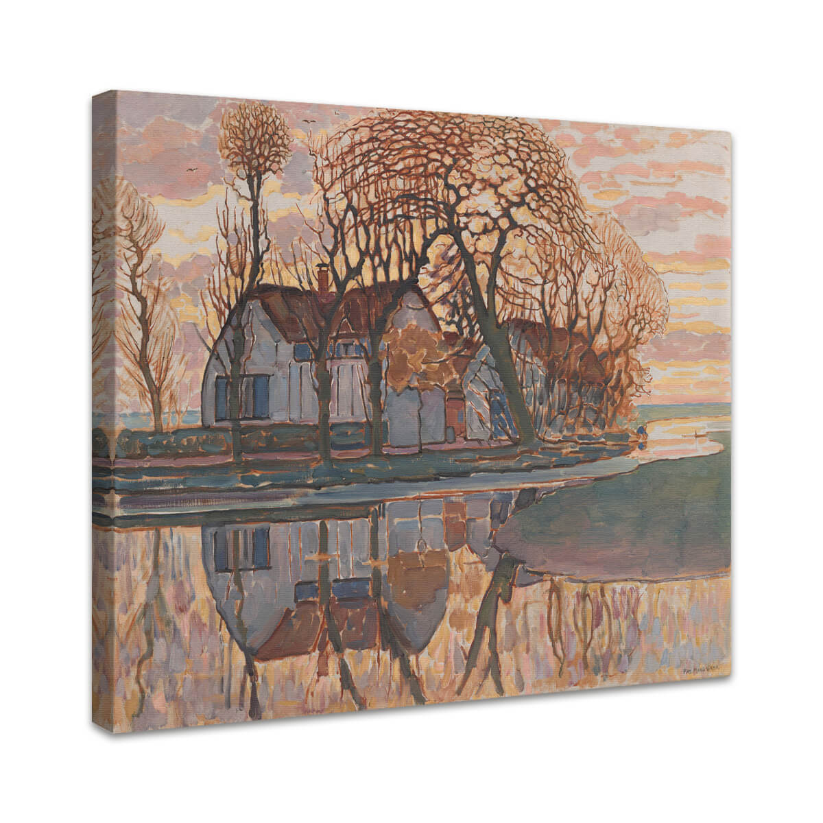 Nun können Sie dieses bemerkenswerte Werk als hochwertigen Kunstdruck für Ihr Zuhause oder Büro erwerben. Mit feinster Druckqualität und detailgetreuer Farbwiedergabe fängt unser Kunstdruck die Essenz des Originalgemäldes ein und bringt die beruhigende Atmosphäre dieser ländlichen Szene direkt in Ihren Raum. Holen Sie sich ein Stück Kunstgeschichte in Ihr Leben und genießen Sie die zeitlose Schönheit eines frühen Mondrian-Meisterwerks.