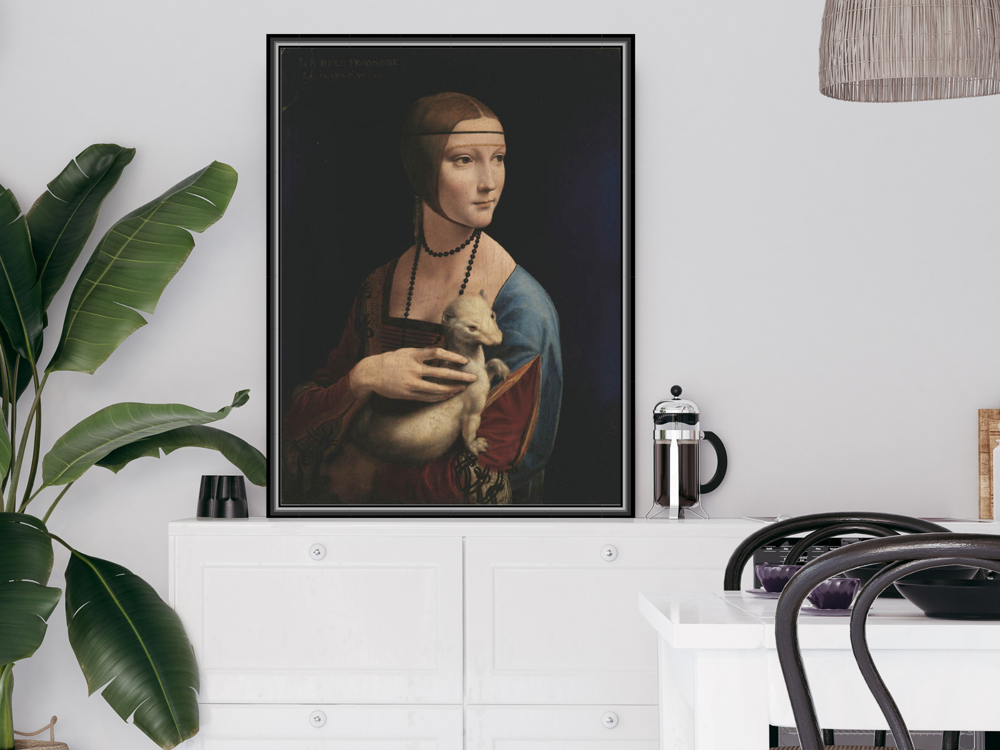 Erleben Sie die faszinierende Eleganz der Hochrenaissance mit dieser hochwertigen Reproduktion von "Dame mit dem Hermelin“ – einem der bedeutendsten Porträts von Leonardo da Vinci. Entstanden um 1489–1490, zeigt das Gemälde Cecilia Gallerani, die Geliebte von Ludovico Sforza, Herzog von Mailand. Das Hermelin, das sie im Arm hält, steht symbolisch für Reinheit, Adel – und für ihren Gönner selbst.