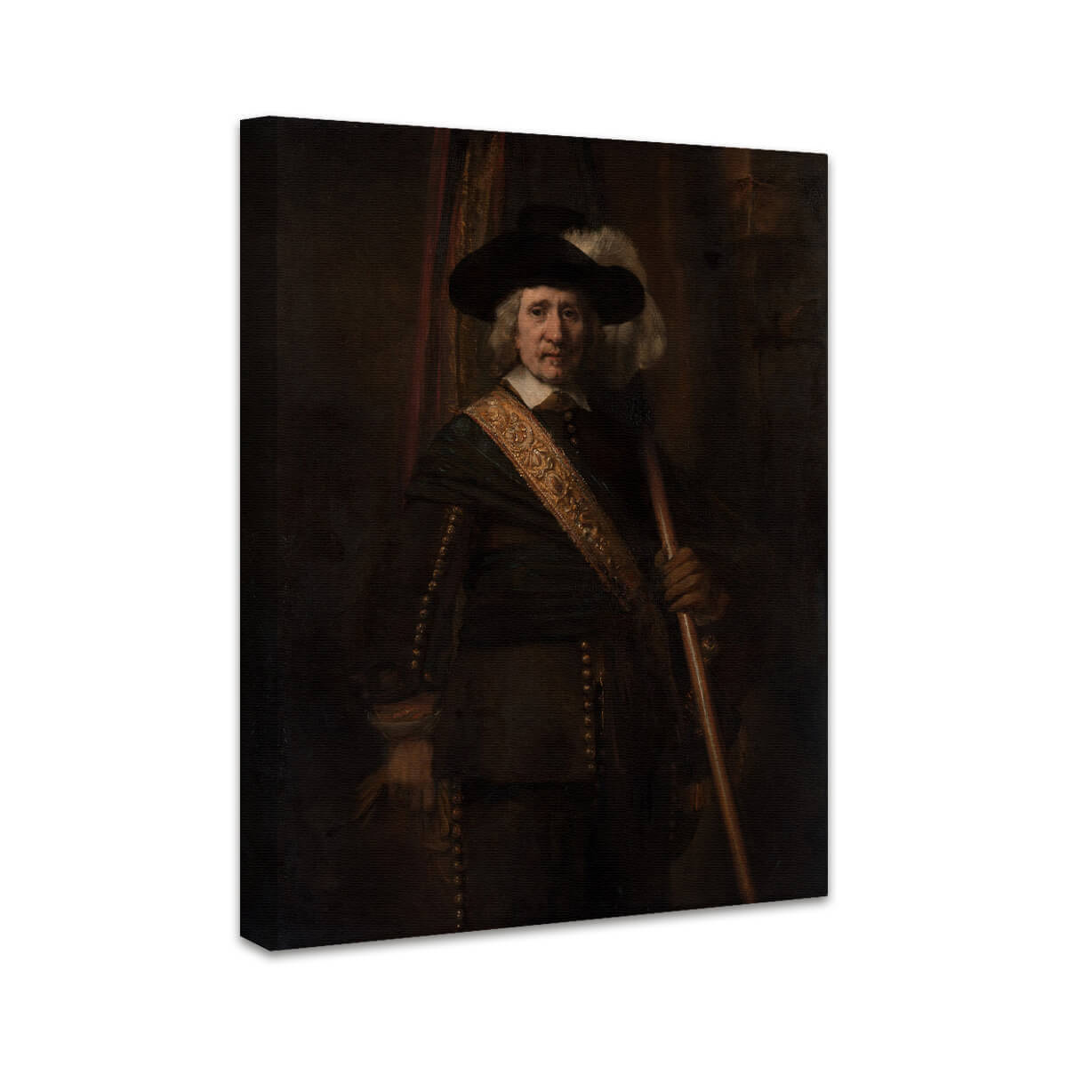 Das Gemälde "Der Standartenträger" von Rembrandt van Rijn, um 1636 geschaffen, ist ein beeindruckendes Beispiel für die barocke Kunst. Es zeigt Floris Soop, einen Soldaten, in seiner Rolle als Standartenträger. Rembrandt fängt den Stolz und die Würde seines Modells in einem Moment der Ruhe und Erhabenheit ein.
