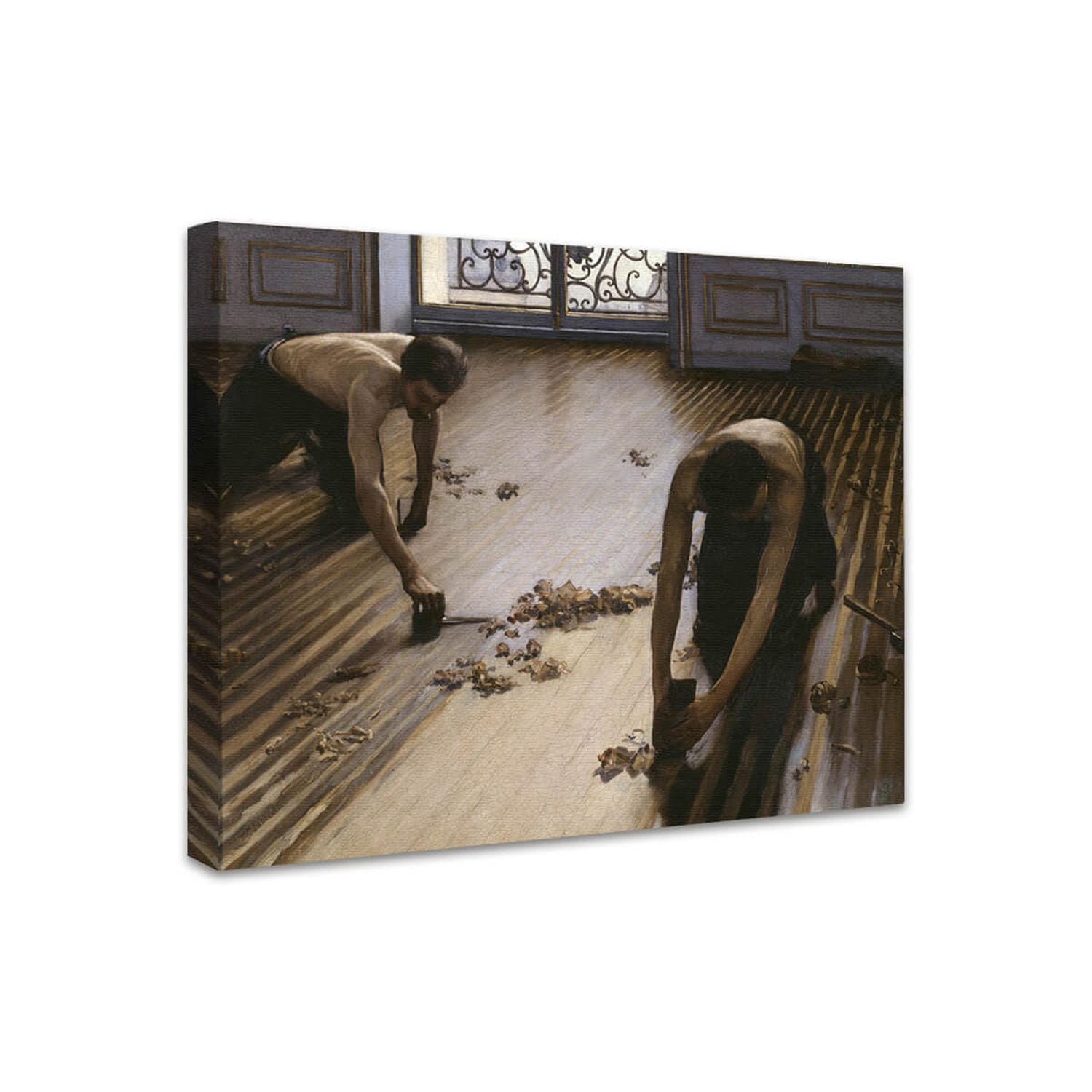 Entdecken Sie die meisterhafte Darstellung des Alltagslebens im 19. Jahrhundert mit diesem hochwertigen Kunstdruck von Gustave Caillebottes ikonischem Werk Die Parkettschleifer (Les raboteurs de parquet). Das 1875 entstandene Gemälde gilt als eines der frühesten Beispiele für sozialrealistische Kunst und beeindruckt durch seine intime Szene, außergewöhnliche Perspektive und die meisterhafte Darstellung von Licht und Texturen.