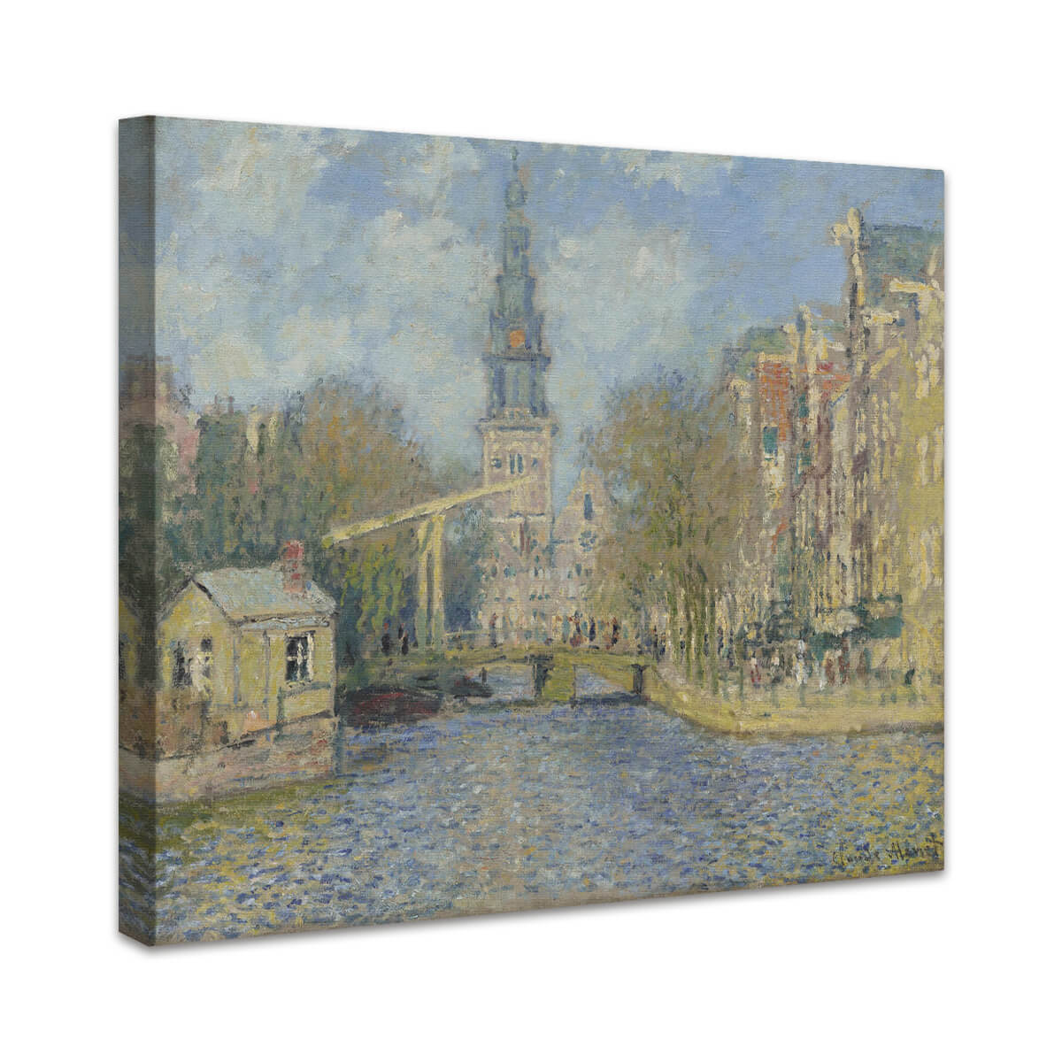 Das Gemälde zeigt die historische Zuiderkerk-Kirche am Ende des Groenburgwal-Kanals, deren Spiegelbild sanft auf der Wasseroberfläche tanzt. Mit seinen typischen lockeren Pinselstrichen und der harmonischen Farbpalette vermittelt Monet eine lebendige, fast träumerische Szene, die das Lichtspiel auf dem Wasser und die architektonische Schönheit Amsterdams perfekt einfängt.