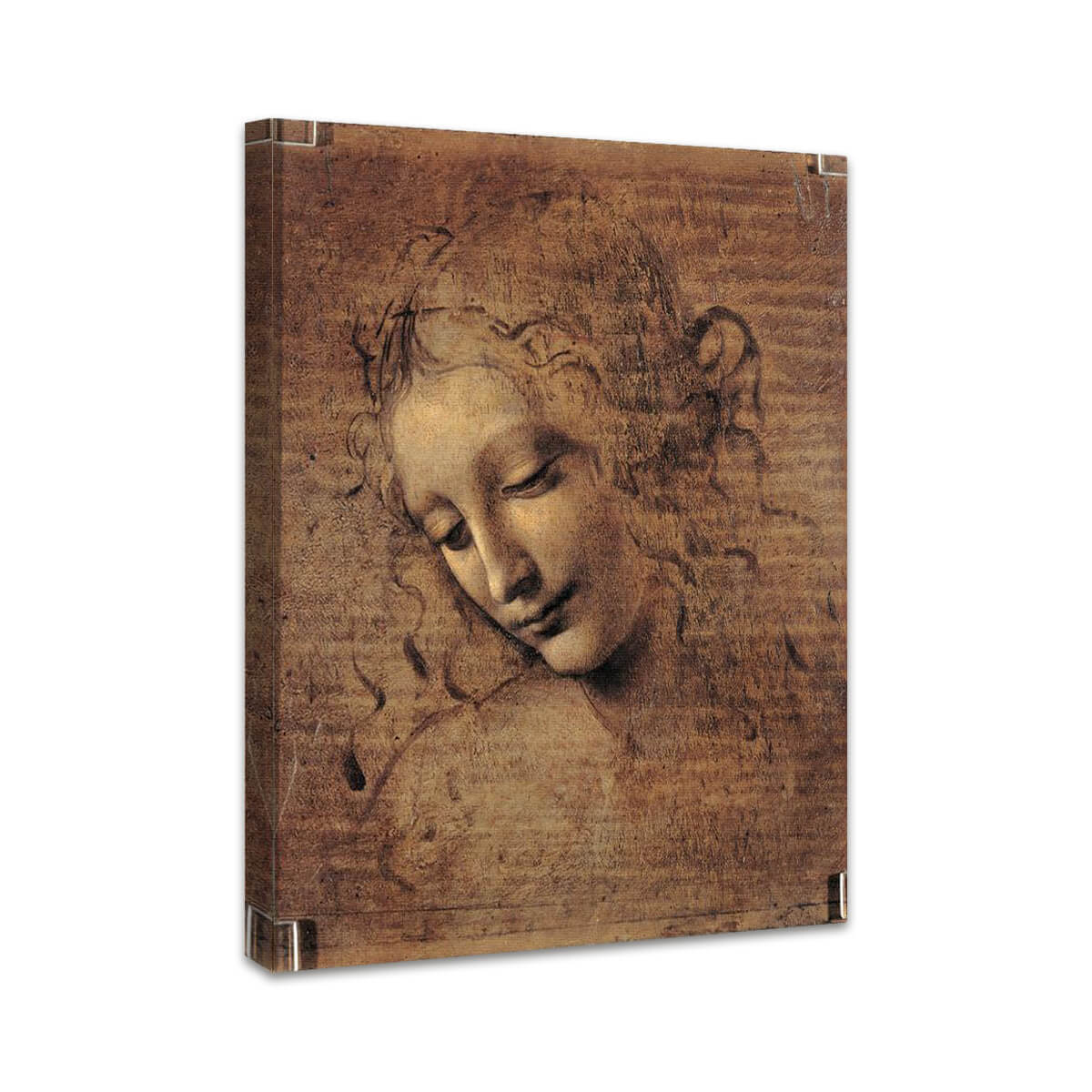 Leonardo da Vincis "Frauenkopf" ist eine feinsinnige Studie weiblicher Schönheit und Anmut. Mit weichen Linien, subtiler Schattierung und tiefem Ausdruck zeigt das Werk die Meisterschaft des Renaissance-Genies im Erfassen menschlicher Emotion. Diese hochwertige Kunstreproduktion bringt die stille Eleganz und technische Perfektion des Originals in Ihr Zuhause – ein Highlight für Liebhaber klassischer Porträtkunst.