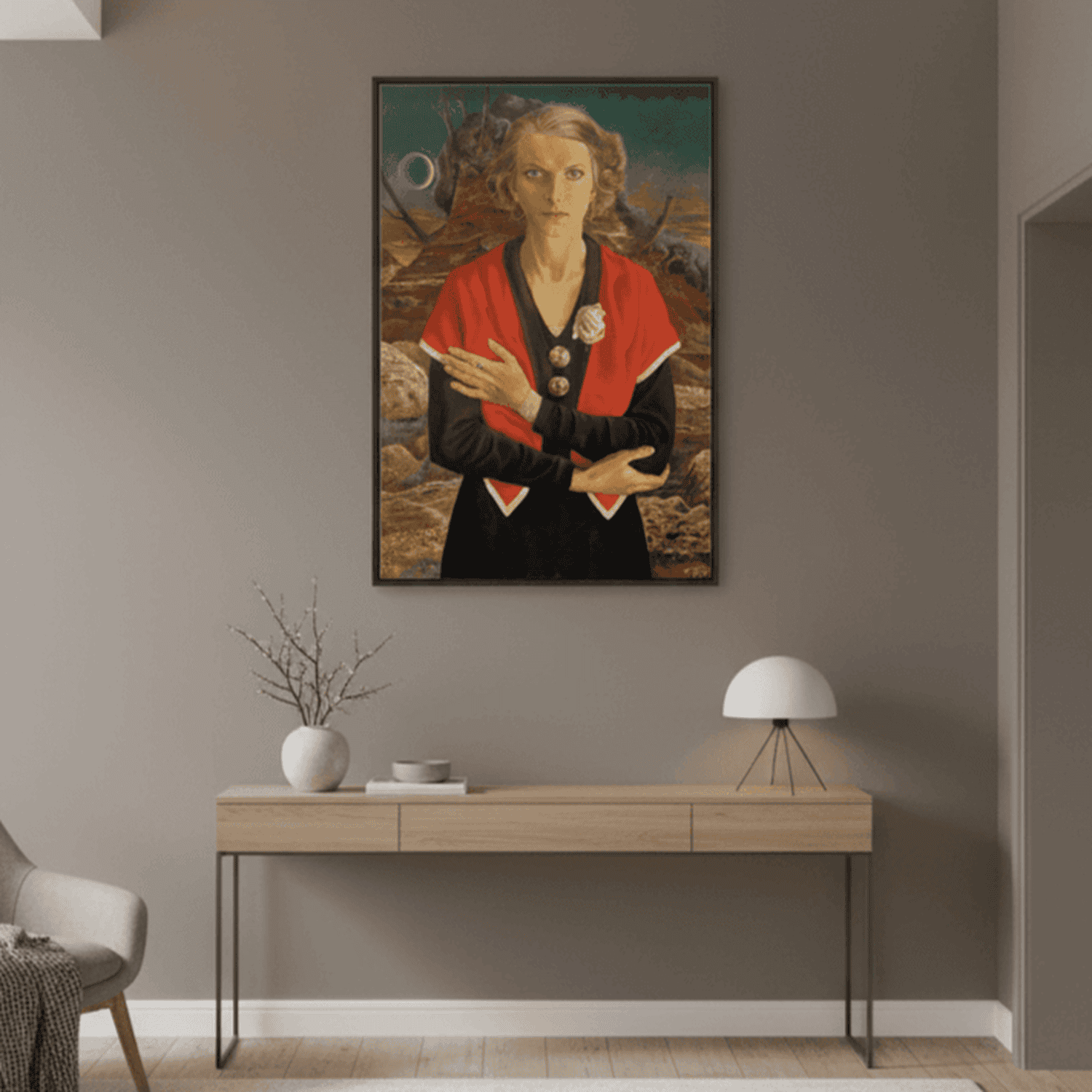 "Frauenporträt" von Rudolf Schlichter präsentiert die weibliche Figur in sachlicher, klarer Formensprache. Die reduzierte Farbpalette, präzisen Konturen und konzentrierte Mimik vermitteln Persönlichkeit und Ausdruck. Diese hochwertige Kunstreproduktion bringt psychologische Tiefe, stilistische Klarheit und moderne Porträtkunst in Wohn- oder Arbeitsräume – perfekt für Liebhaber der Neuen Sachlichkeit.