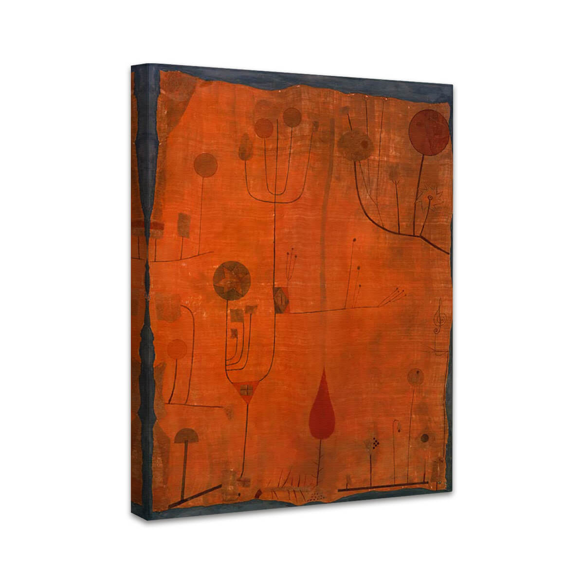 Paul Klees "Früchte auf Rot" besticht durch seine farbenfrohe Komposition und verspielte Formenvielfalt. In kräftigem Rot gehalten, bringt das Werk eine lebendige Dynamik in den Raum. Die abstrahierten Fruchtformen wirken beinahe schwebend und erinnern an Klees poetischen Zugang zur Malerei. Diese Kunstreproduktion bringt die Leichtigkeit und Tiefe des Originals perfekt zur Geltung – ideal für moderne, farbbetonte Innenräume.