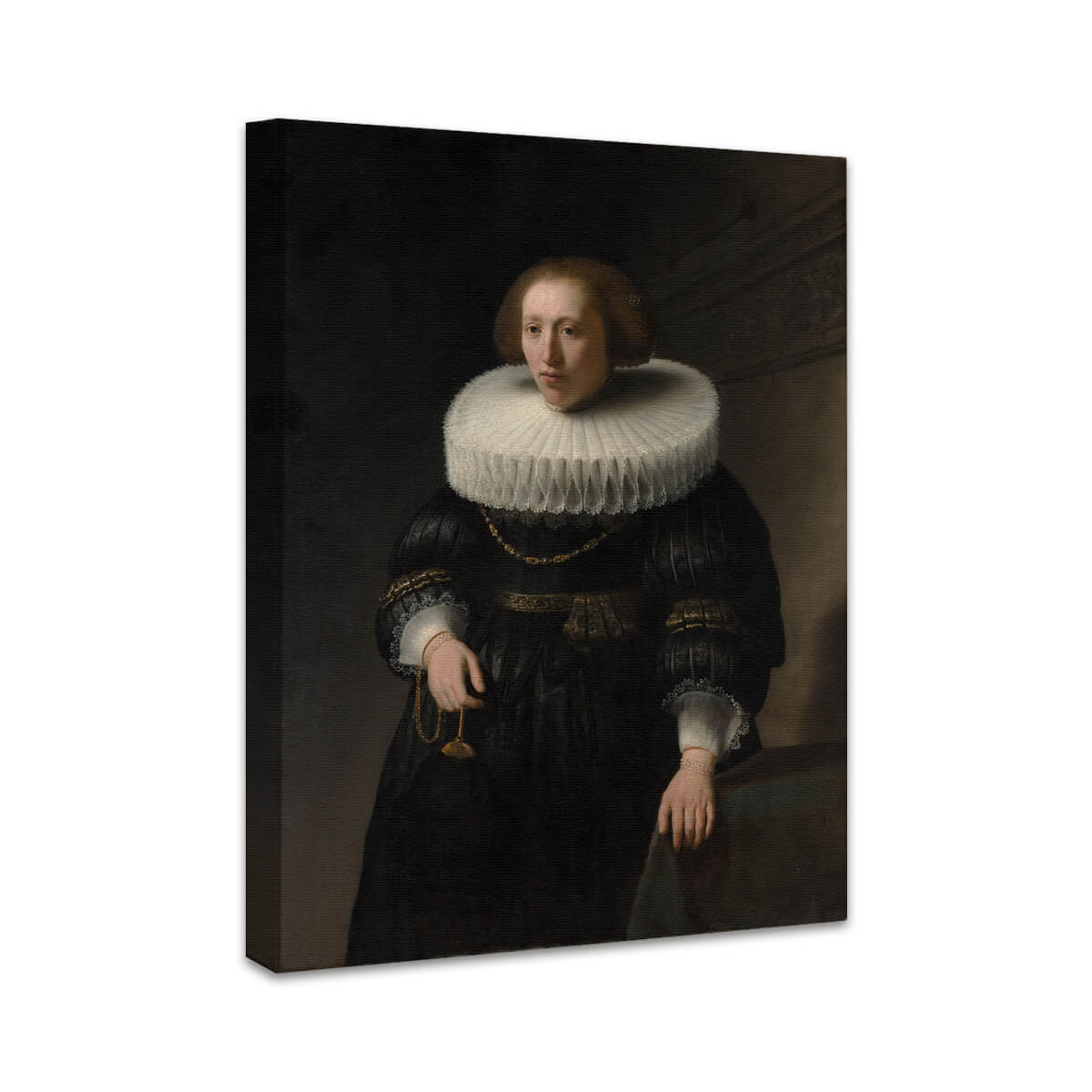 Das Gemälde "Porträt einer Frau, vermutlich eines Mitglieds der Familie Van Beresteyn" ist ein eindrucksvolles Meisterwerk von Rembrandt van Rijn. Dieses barocke Öl-Gemälde zeigt eine Frau in eleganter Kleidung, die durch ihre edle Haltung und ihren ausdrucksstarken Blick fasziniert.