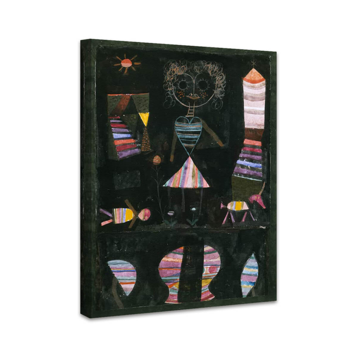 Klees charakteristischer Stil – eine Mischung aus Symbolik, geometrischer Formensprache und farblicher Leichtigkeit – spiegelt sich hier in einer lebendigen Darstellung von Figuren wider, die wie Marionetten auf einer imaginären Bühne erscheinen. Die Komposition wirkt gleichzeitig kontrolliert und traumhaft entrückt – ein typisches Merkmal seines Schaffens in der Bauhaus-Zeit.