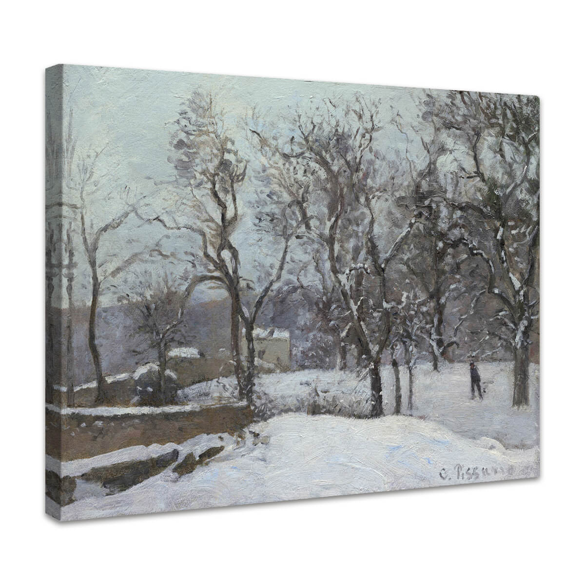 Camille Pissarros "Schnee in Louveciennes“ fängt die ruhige Schönheit eines verschneiten Wintertages in dem kleinen französischen Dorf Louveciennes ein. Mit impressionistischen Pinselstrichen und einer sanften Farbpalette aus Weiß-, Grau- und Beigetönen vermittelt das Gemälde die Stille und Kälte der Landschaft. Die Darstellung eines schneebedeckten Weges, flankiert von kahlen Bäumen und ländlichen Gebäuden, erzeugt eine atmosphärische Tiefe und lädt den Betrachter in eine friedliche Winteridylle ein. Dieser hochwertige Kunstdruck bringt die magische Stimmung des Impressionismus in Ihr Zuhause – perfekt für Liebhaber winterlicher Landschaftsmalerei.