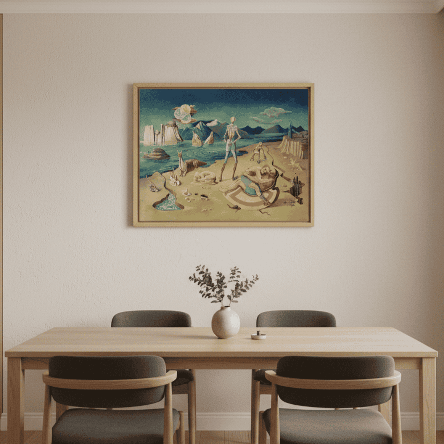 Rudolf Schlichters "Strandleben am Styx" verbindet scheinbar idyllische Strandszenerie mit düsterer Symbolik. Der Titel verweist auf den mythologischen Grenzfluss zur Unterwelt, wodurch das Werk eine spannungsvolle, verstörende Tiefe erhält. Präzise Figurenzeichnung und sachliche Klarheit kontrastieren mit existenzieller Bedrohung. Diese hochwertige Kunstreproduktion bringt provokante Bildsprache, mythologische Anspielung und starke Wirkung in moderne Wohnräume.