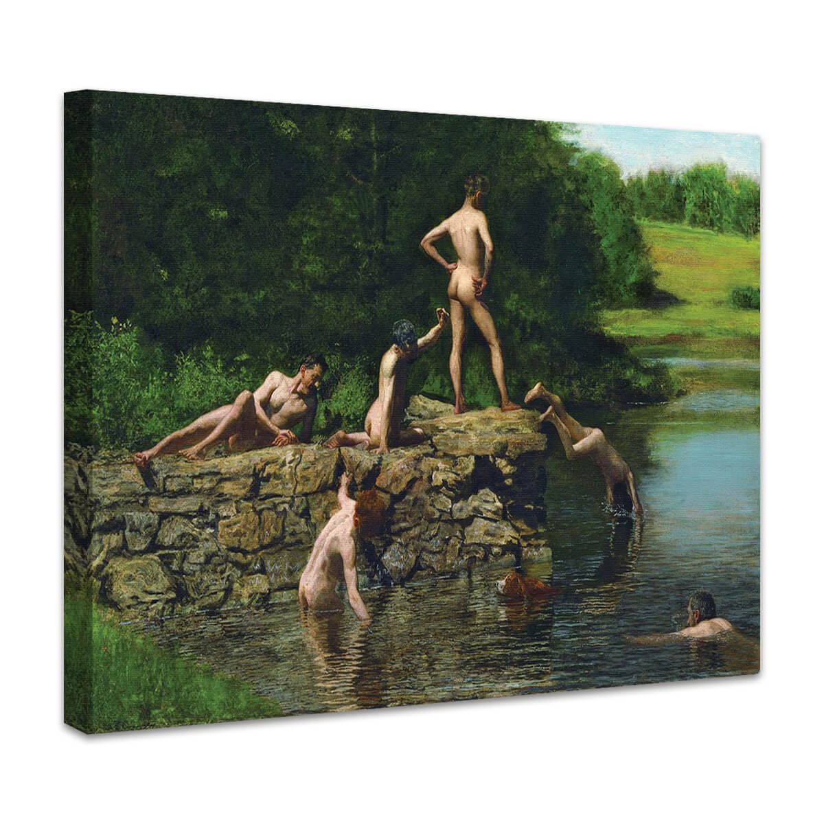 Eakins, selbst in der Szene als Rückenfigur zu sehen, verbindet in diesem Bild klassisch-akademische Aktdarstellung mit moderner, realitätsnaher Beobachtung. Der Fokus liegt nicht auf Erotik oder Idealismus, sondern auf Anatomie, Licht, Muskelspannung und dem freien, ungezwungenen Moment. Das Werk war für seine Zeit revolutionär – sowohl künstlerisch als auch gesellschaftlich – und wurde lange aus öffentlichen Sammlungen ferngehalten.