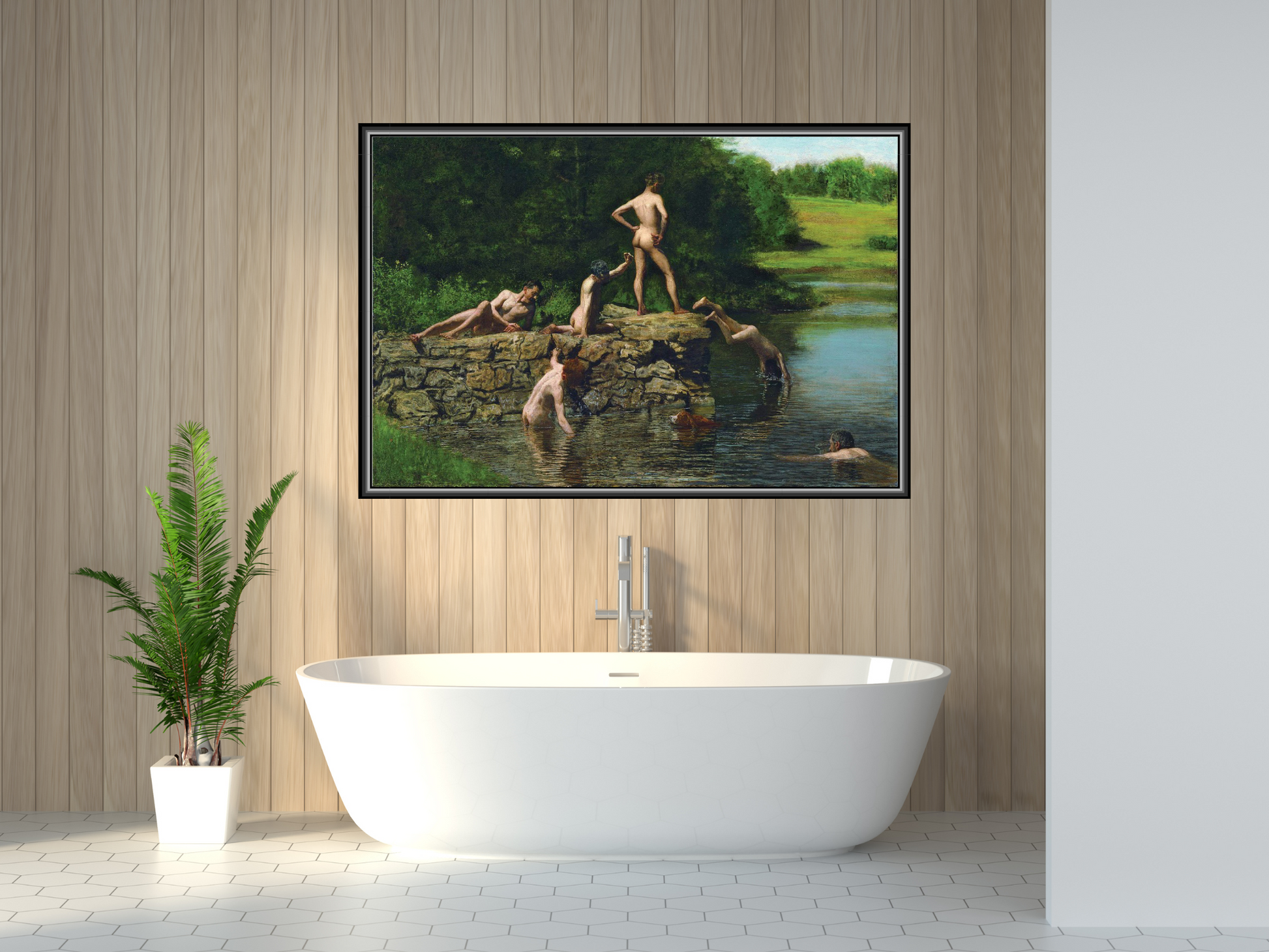 Heute gilt "Swimming" als ein wegweisendes Werk für die Entwicklung der amerikanischen Aktmalerei und als Ausdruck von Eakins’ kompromisslosem Streben nach Wahrheit in der Kunst. Diese hochwertige Reproduktion bringt die atmosphärische Lichtführung, die klare Komposition und die stille Kraft des Originals eindrucksvoll zur Geltung.