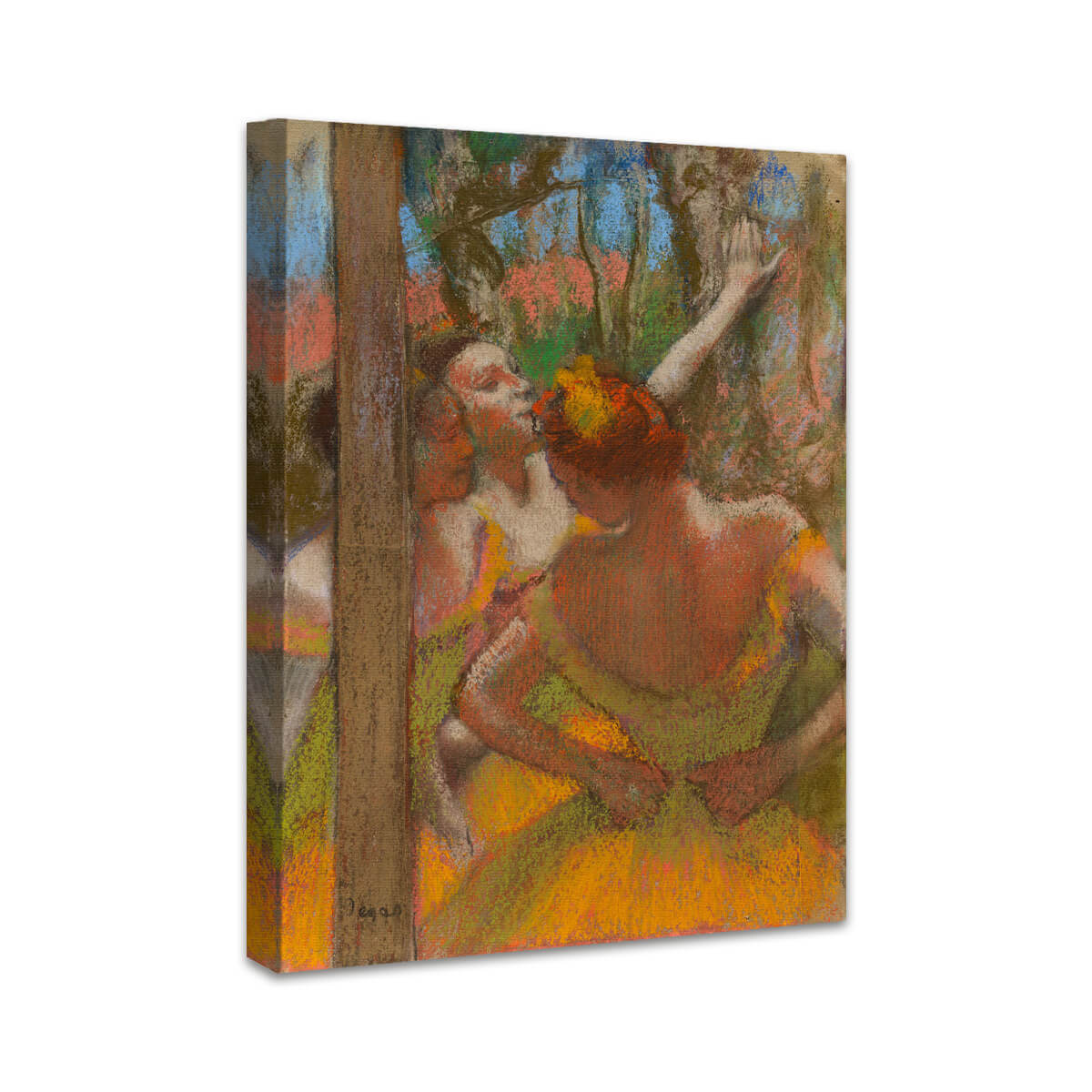 Erleben Sie die dynamische Schönheit des Tanzes mit "Tänzerinnen", einem der bekanntesten Werke von Edgar Degas, das die Anmut und Eleganz des Balletts in seiner einzigartigen Art einfängt. Entstanden zwischen 1870 und 1880, zeigt dieses Gemälde die Tanzwelt in einer Mischung aus fließender Bewegung und feiner Detailtreue, die typisch für Degas’ Werke ist.