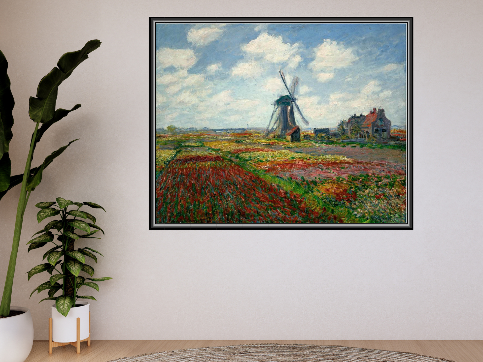 Diese atemberaubende Reproduktion von Monets "Tulpenfelder in Holland" bringt impressionistische Farbenpracht in Ihre Räume! Das strahlende Meisterwerk zeigt holländische Tulpenfelder in voller Blüte – ein lebendiges Farbenspiel aus leuchtenden Rot-, Rosa- und Gelbtönen. Monets meisterhafter Pinselstrich fängt das tanzende Licht über der Landschaft ein und lässt die Blüten förmlich vibrieren. Die hochwertige Druckqualität bewahrt jede Nuance der charakteristischen Lichtstimmung und zarten Farbübergänge. Ein zeitloses Kunstwerk, das jeden Raum mit Frühlingsfrische erfüllt und Liebhaber impressionistischer Malerei begeistert.