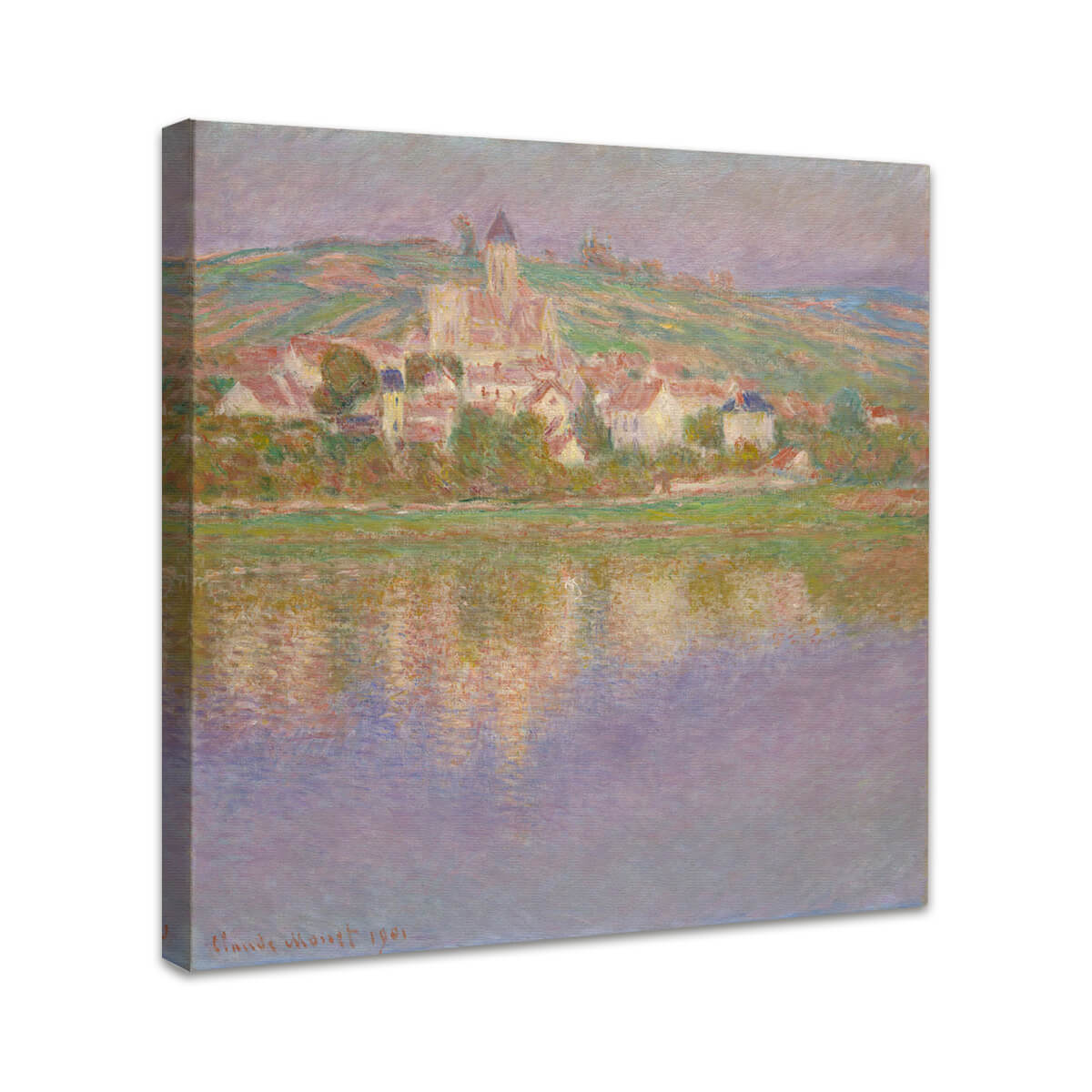 Tauchen Sie ein in die malerische Schönheit der französischen Landschaft mit Claude Monets Meisterwerk "Vétheuil“. Dieses 1901 entstandene Gemälde fängt den idyllischen Blick auf das Dorf Vétheuil ein, das sich am Ufer der Seine befindet. Monets charakteristischer impressionistischer Stil verleiht der Szenerie eine traumhafte Atmosphäre, die durch die zarten Farbnuancen und das sanfte Spiel von Licht und Wasser hervorgehoben wird.
